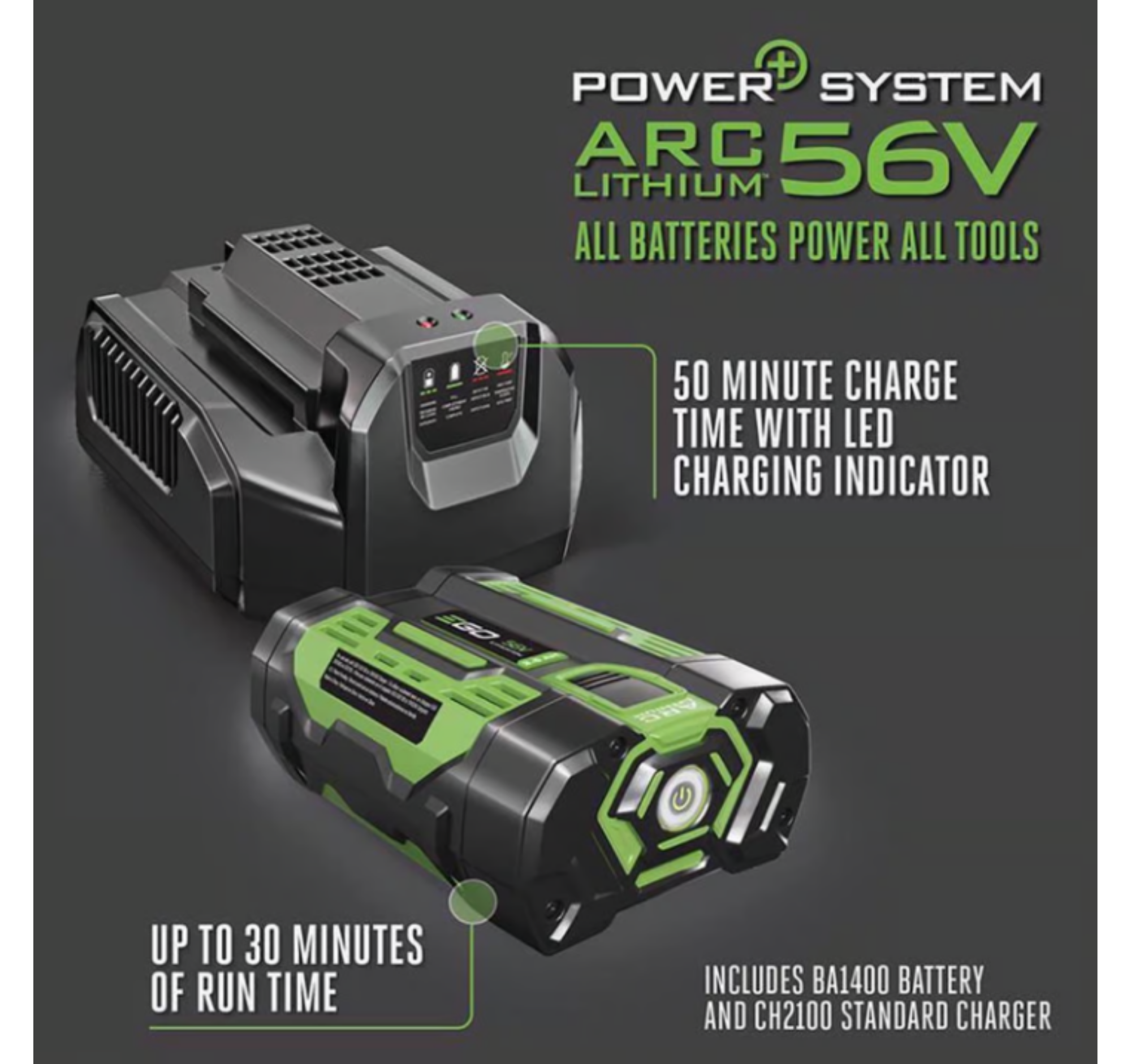 Compatible with all EGO 56V ARC Lithium batteries