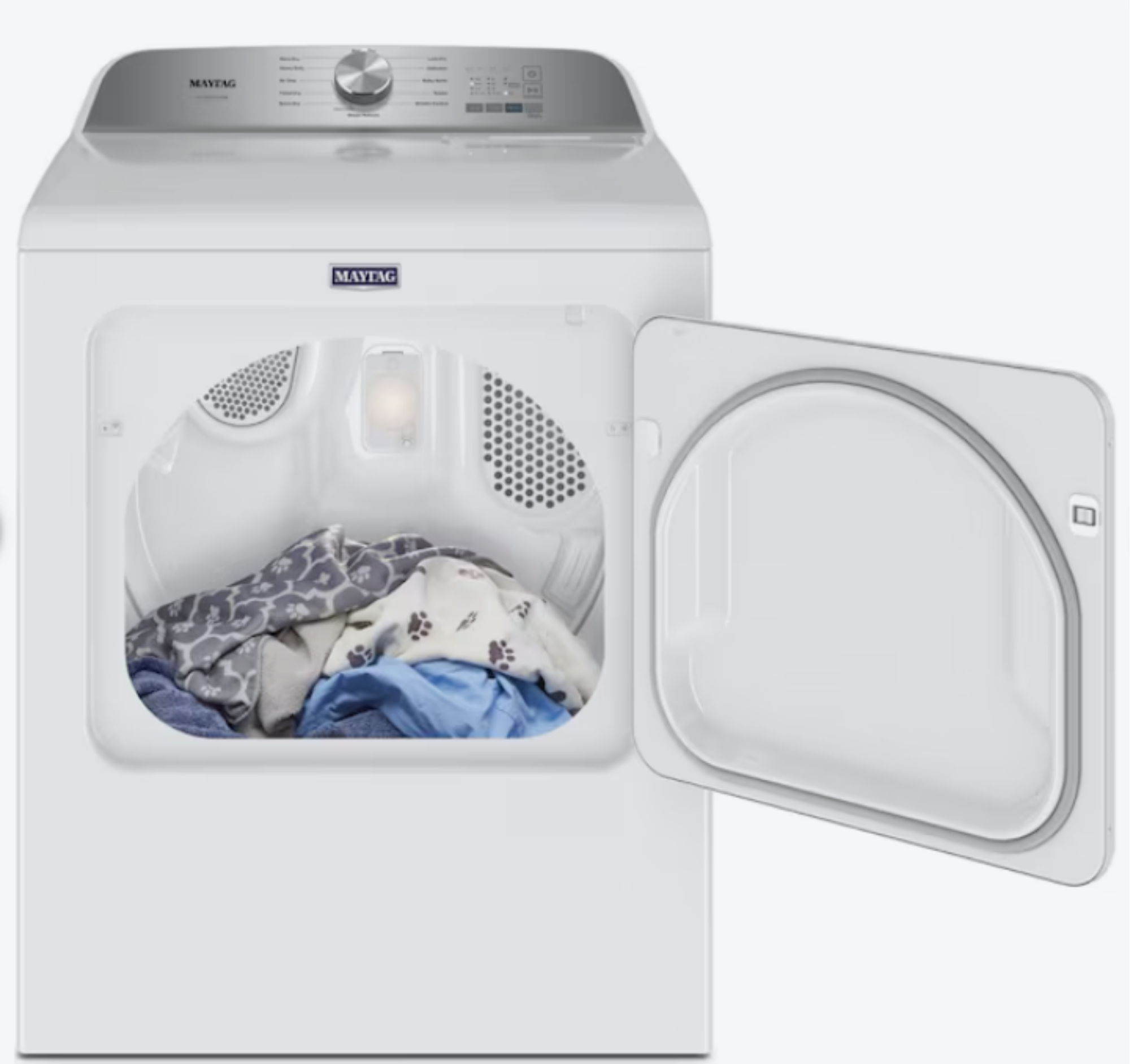 Remove pet hair in the dryer with the Maytag® Pet Pro top load electric dryer. The Pet Pro option lifts pet hair off clothes while the XL lint trap removes loads of pet hair. This steam dryer helps prevent wrinkles while Moisture Sensing helps prevent over- and under-drying on every load on this clothes dryer for pet hair.