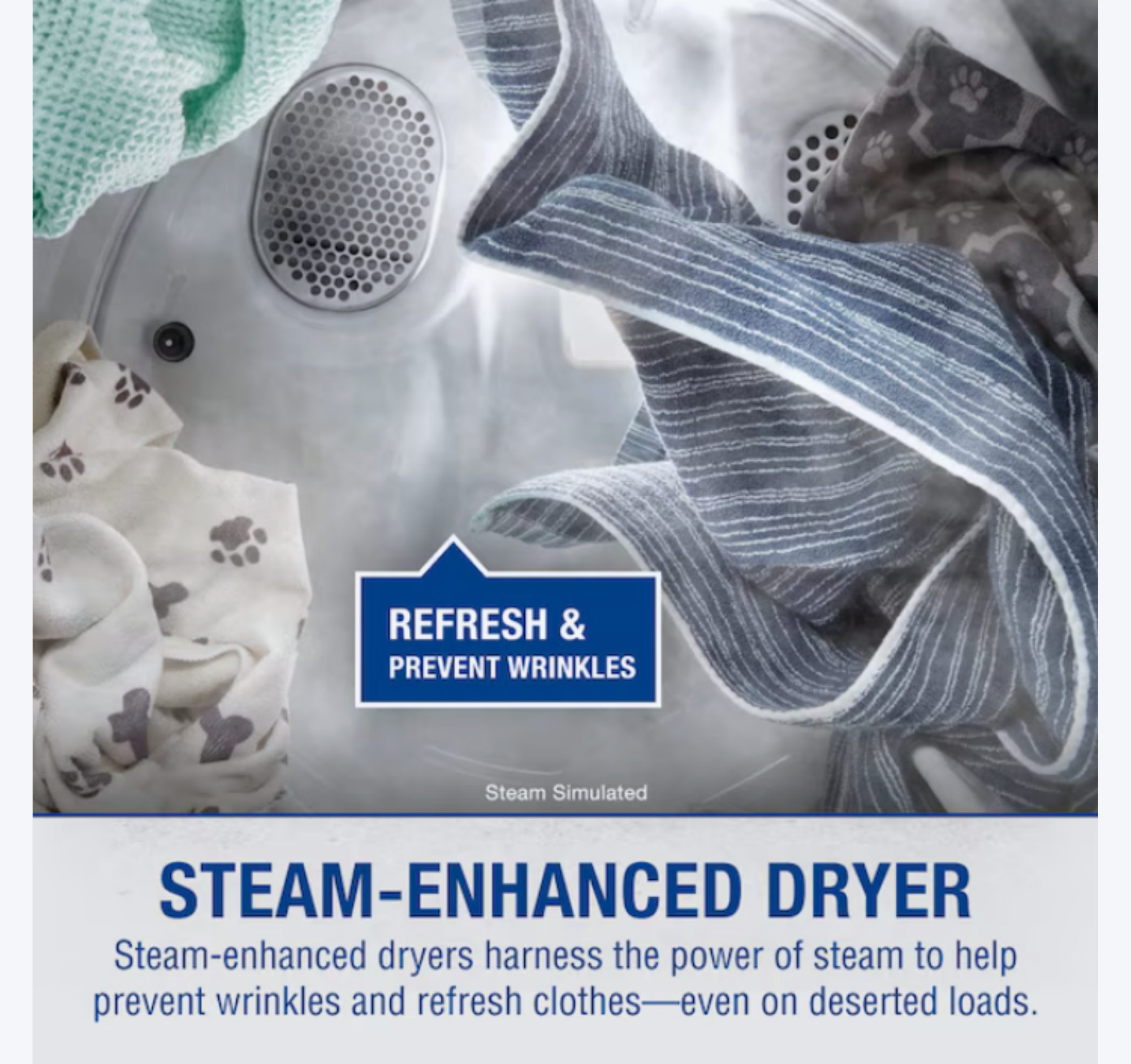 Steam Refresh Cycle- Built to reduce wrinkles, the Steam Refresh cycle quickly revives clothes without the need for a full wash cycle.